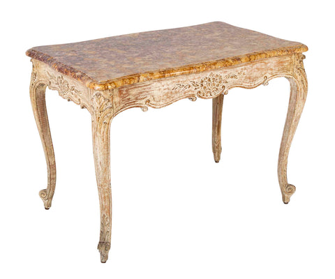 18th Century Louis XV Limed Oak Table with Later Marble Top