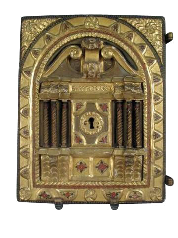 An ornate 18th century carved, water gilt and painted tabernacle door with its original hinges and lock.