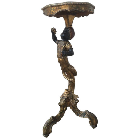 Rare 18th century Venetian Rococo painted and gilt stand with a turbaned moor holding grapes aloft over a tripod base. The unique detail of this tavola is the painting on top of Piazza San MarCo (St Mark's) and the Doge's Palace in the style of Francesco Guardi.