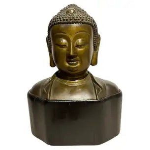 19th Century Bronze Bust of Buddha on a Wooden Base