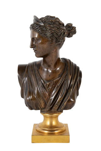 19th Century bronze bust of woman in classical pose.