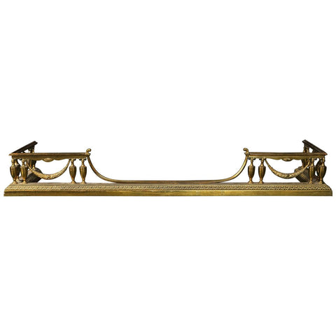 A magnificent English urn and swag form bronze fire fender. Interior dimensions : 54.25" wide x 12.25" deep.