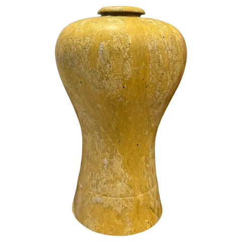 19th century Japanese Meiji period carved stone Meiping style urn or bud vase. The lovely pale yellow stone varying in shades from mustard to umber with some black striations is just exquisite. As is the Meiping form, a full bulbous body topped by a delicate, slightly raised neck. Beautifully carved and polished, this piece has a presence and true personality belying it's size. Currently, one of my favorite objects.