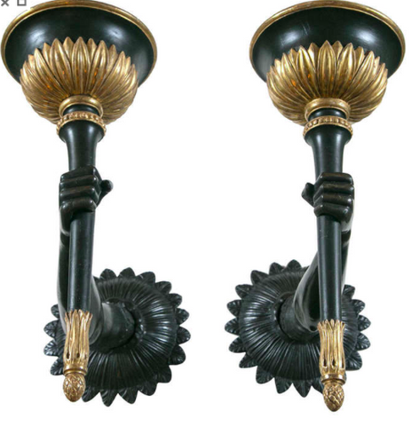 20th Century Venetian Style Bronze and Parcel-Gilt Wood Arm Sconces