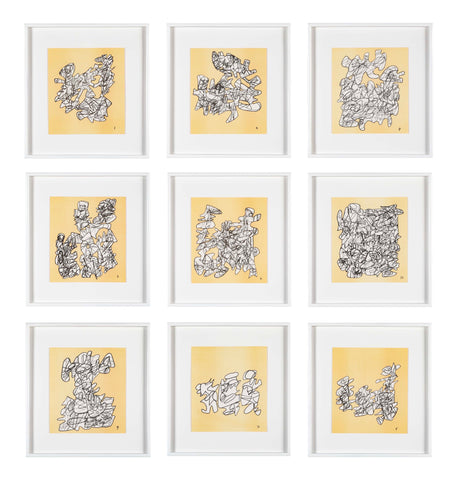 9 Lithographs on yellow paper by Jean Dubuffet ( France. 1901 - 1985 ) from "Conjectures 1983". Title page. Monogramed, dated and numbered 33/60. Circa 1983.