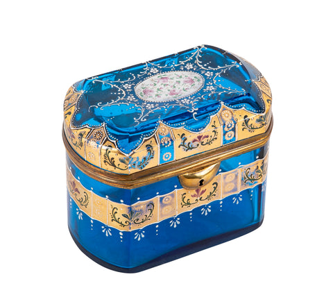 A Blue Bohemian Hand Painted & Gilded Glass Box