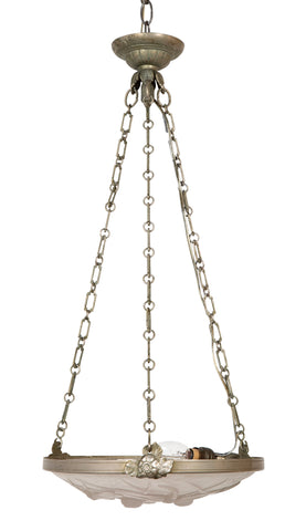 A French frosted glass disc with dragonfly motif as hanging light. Circa 1930's.