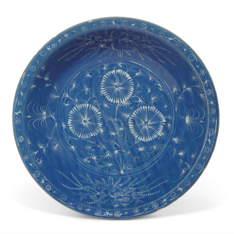 A Large Swatow Slip-Decorated Blue-Ground Bowl Ming Dynasty (1368-1644)