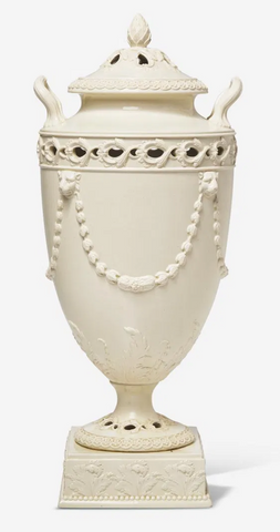 A Large Wedgwood Queensware Vase and Cover. Glazed earthenware with metal hardware, England Circa 1880's. Impressed “WEDGWOOD”