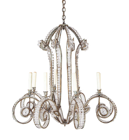 A Late 20th Century 8 Light Metal and Crystal Bead Chandelier