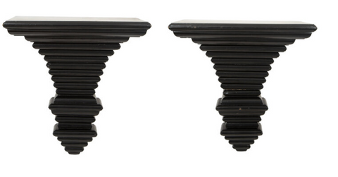 A pair of baroque inspired ebonized wood wall brackets. Produced in the second half of the 20th century.