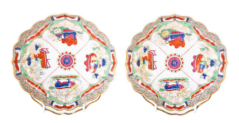 A Pair of Worcester "Dragons in Compartments" Porcelain Dishes