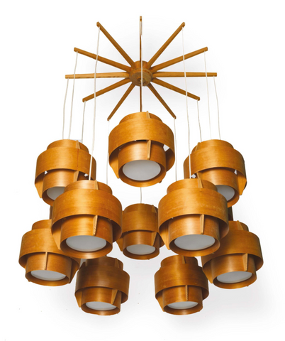 A ten light chandelier in Pine and Perspex Edition Markaryd. About 1960