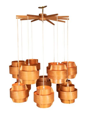 A Swedish Mid-Century 10 Lamp Suspended Ceiling Light of Pine