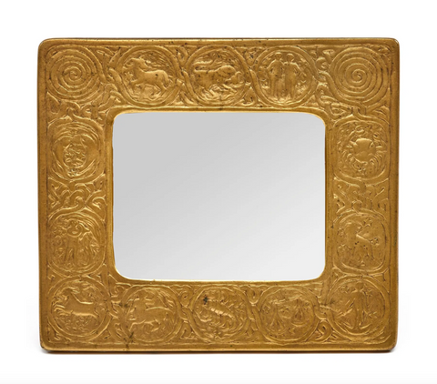 Bronze frame with impressed signs of the zodiac in boarder. Marked "Tiffany Studios New York" on back