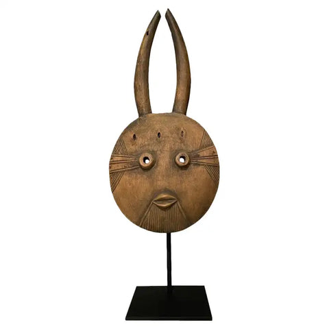 African Goli Style Tribal Mask Mounted on a Custom Steel Base