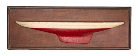 Antique American half hull of a sailing yacht with great original paint surface and original backboard.