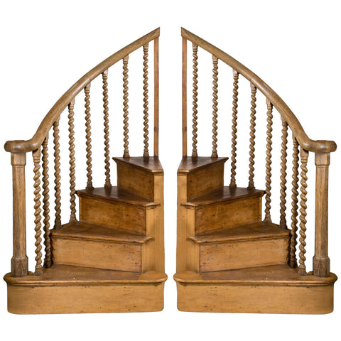 Antique English pine steps with barley twist banister, oak risers and fabulously turned oak rail. Circa 1860.
