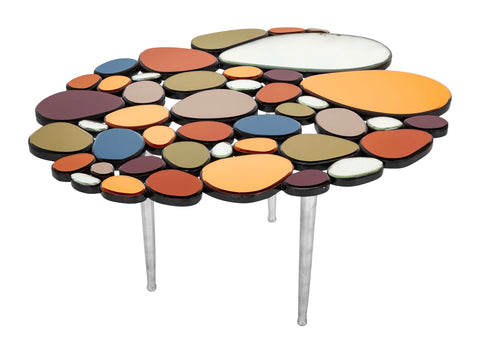 Belgian School "Ode's Design Moon" Table in antique colored glass mirrors by Olivier De Schrijver ( b. Belgium 1958 ).  signed and dated 9/24.