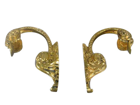 A pair of French bronze dore drapery tiebacks with a shell motif. Signed PD 34. Unusual quality.