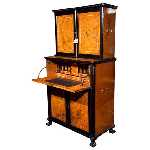 A British colonial secretary, probably Anglo-Indian, in campaign form with burl wood and ebony and bone inlay.
