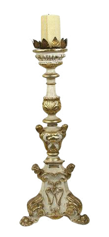 Carved giltwood and paint candlestick, Italian.