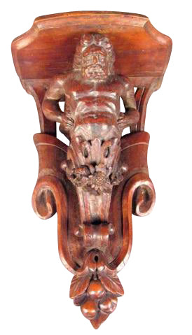 A 19th century Italian wooden bracket with the carved figure of Atlas supporting the shelf.