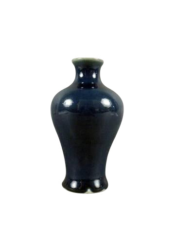 A small Chinese porcelain blue vase with an apocryphal Kangxi mark from the late 19th century.