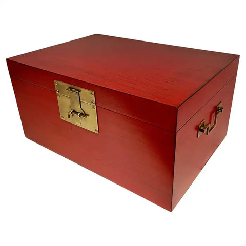 Chinese Red Lacquered Box With Brass Mounts, Mid 20th Century