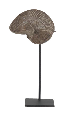 A crinoid fossil on stand. Crinoids are marine animals similar to sea anemones, however, they have long stalks.
