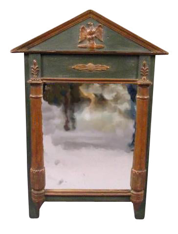 An early 19th century small Danish pedimented neoclassical design mirror with old glass.
