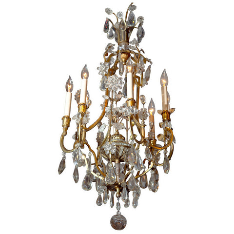 An early Bagues eight-light, chandelier with a bronze frame adorned in his signature flowers.