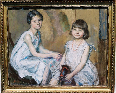Emile BAES (Belgium, 1879-1954) "The Two Sisters" Signed E Baes (lower left) Pastel on paper laid on canvas. Very good condition. Great color retention. In its original Louis XVI style gilded frame and its original glass giving a wonderful wavy and soft feel to the work. It is believed that the two sisters were the artist's daughters.