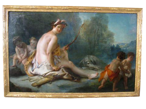 An oil on canvas mounted on panel "Allegory of America" attributed to French artist Auger Lucas.