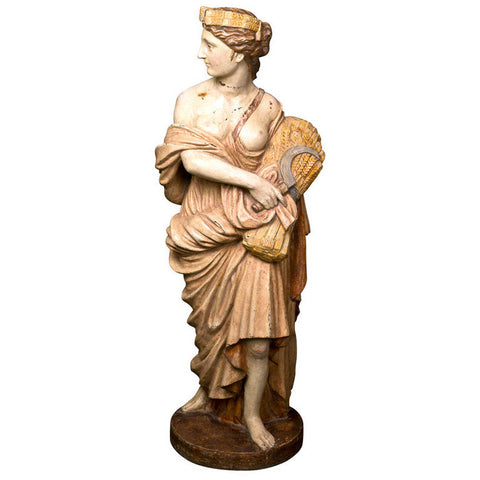 A splendid example of a classically posed French iron statue depicting one of the four seasons ( Autumn ), retaining original paint.