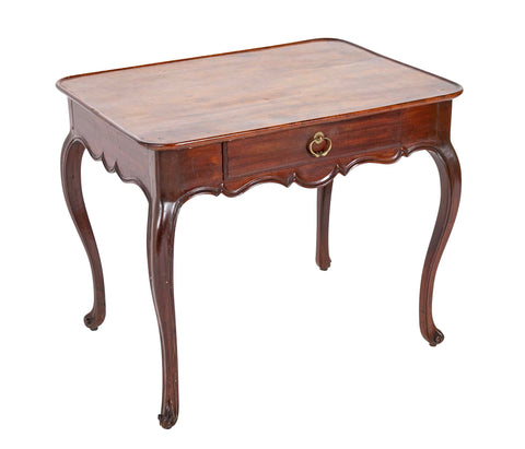A French Louis XV tray top one drawer table with scallopped molded apron and scrolled feet.