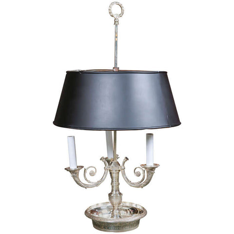 A lovely 19th Century French 3 lite silver plated bronze bouillotte lamp.