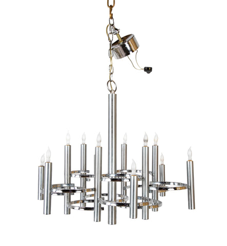Gaetano Sciolari 12 Arm Chrome Chandelier