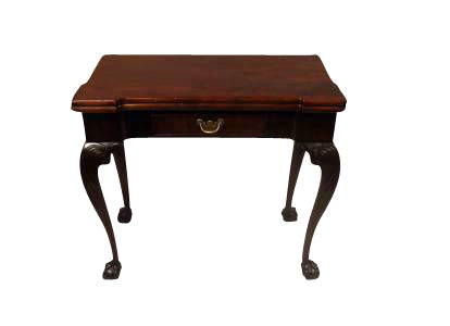 A George II (Chippendale) ball and claw, blocked corner flip top game table with carved acanthus knees and drawers.