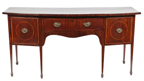 George III bow front sideboard with cross banding, English. (top may not be original to the piece)