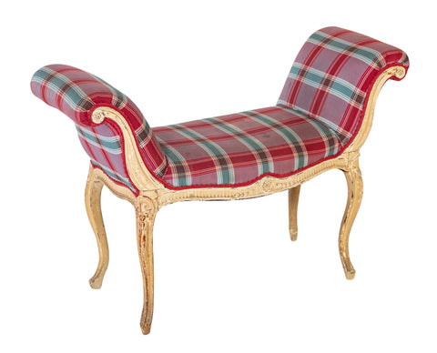 George III scroll arm white painted window bench with fluted apron and cabriole legs. Late 19th Century.