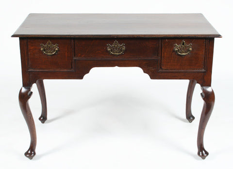 A three drawer Georgian oak lowboy ending on Queen Anne feet in good antique condition, English.