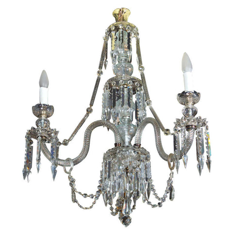 An elegant three-arm Georgian style crystal chandelier. Possibly Perry & Co.