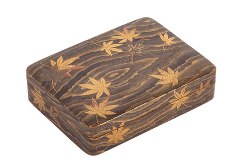 Japanese brown lacquer box with maple leaves on a pond decor. Meiji Period ( 1868 - 1912 ).