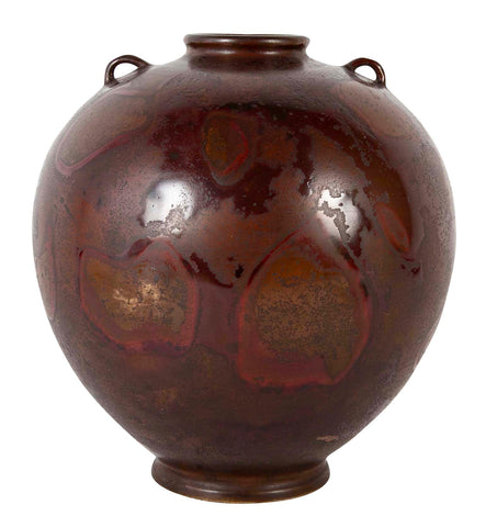 Japanese Patinated Bronze Vase with Two Small Shoulder Handles