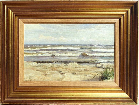 With the help of his talent, Bredsdorff managed successfully the difficult exercise of creating a naturalistic contrast between the three imposing masses of air, water and sand equally represented in this painting.