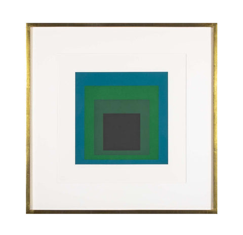 Josef Albers "Homage to the Square" from "Formulation: Articulation 1972". Silkscreen print, Folio II Folders 17. Floated in 23 karat yellow gold frame using all acid free archival materials. #176 of of 1000 printed. Printed by Sirocco Screen Printing, New Haven. Published by Ives-Sillman Inc. New Haven, Printed on Mohawk Superfine Bristol.