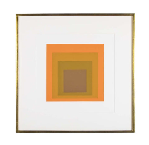 Josef Albers "Homage to the Square" from "Formulation : Articulation 1972". Silkscreen print, Folio II Folders 19. Floated in 23 karat yellow gold frame using all acid free archival materials. #176 of of 1000 printed. Printed by Sirocco Screen Printing, New Haven. Published by Ives-Sillman Inc. New Haven, Printed on Mohawk Superfine Bristol.
