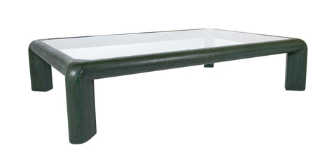 Karl Springer Green Embossed Leather Glass Top Coffee Table