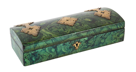 Faux Malachite painted box with brass mounts.  Circa 1870 - 1880.